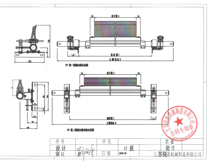 (2) 在清掃器的兩端設有彈簧式調壓器,以方便調節,保持刮刀與皮帶之間具有穩定的接觸壓力。